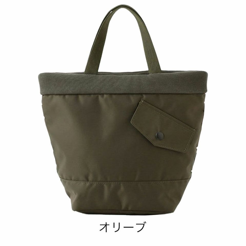 ミリタリーを代表するアイテムMA-1から着想を得たミニトートが登場。 ころんとしたフォルムが特徴的なトートバッグに、ポケットやリブなどのデザインソースを落とし込みました。 【オススメポイント】 -ミリタリズムを表現- ・裏地の配色や、斜めに配置されたフラップポケット、袖口や襟元に配したリブを模したアクセントなど、要所でMA-1のディティールを表現。 -環境に配慮- ・70デニールナイロンと210デニールナイロンを織り上げたツイル生地を使用。 ラグジュアリーな雰囲気を演出する、鈍い光沢感が特徴的。 リサイクルナイロンを100%使用し、環境にも配慮されている。 【TILT COLLECTION】 ミリタリーを代表するアイテムMA-1 JACKETから着想を得たシリーズ。 口元のリブや斜めに配置したフラップポケットなどでディティールを表現。