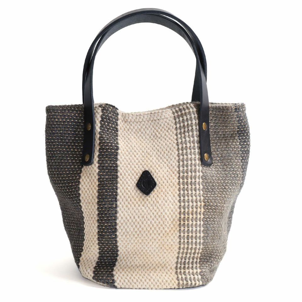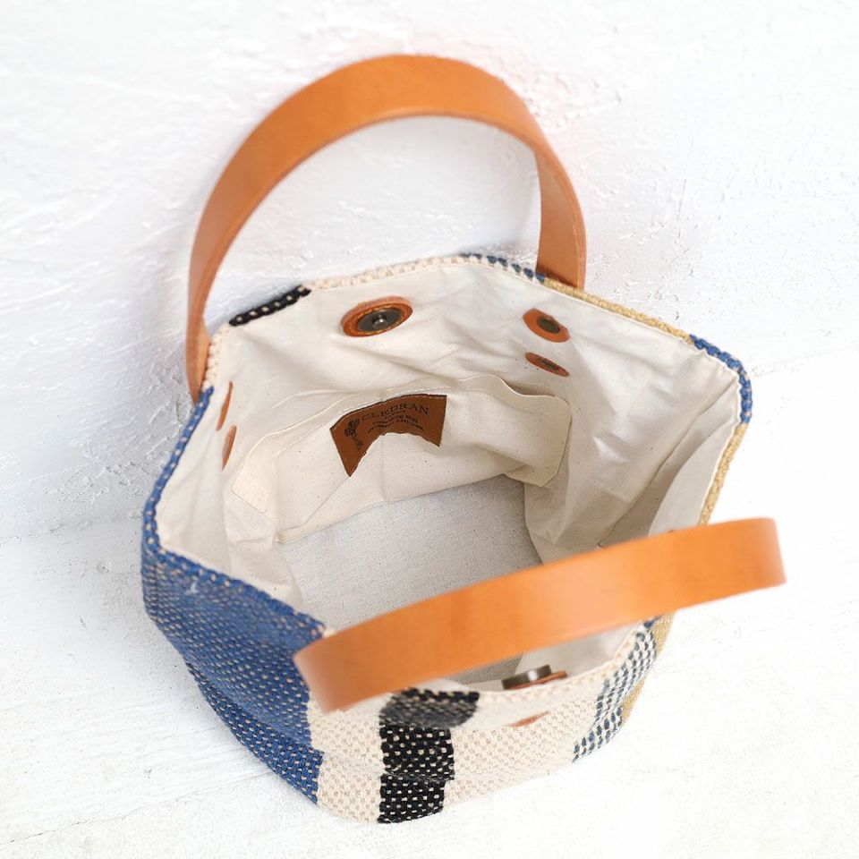 アクセントでキナリ色のコットンジュートも織り込んだ、ミニサイズ仕立てのカゴバッグです。