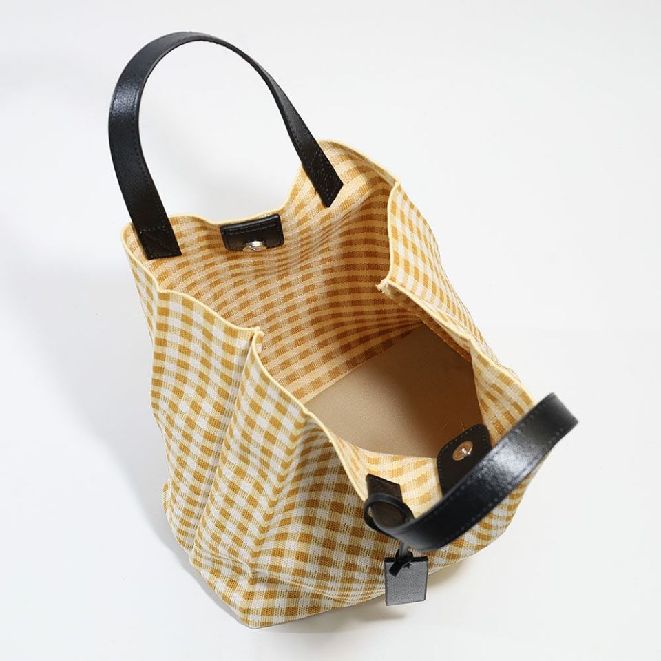 ポリエステル素材のさらっとした手触りのニットを、紙袋のようなフォルムのバッグに仕立てた人気のバッグに、新しい柄が加わりました。