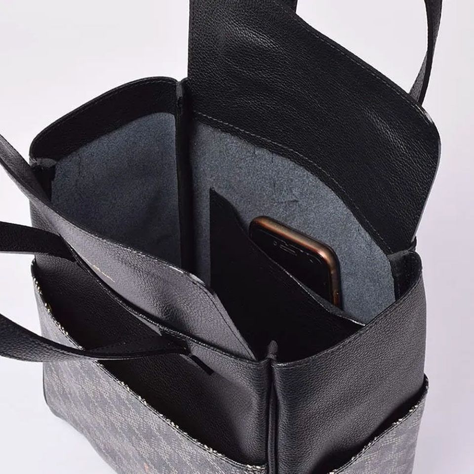 2枚のレザーフラップにより、中がしっかりと見渡せる大開口を実現。