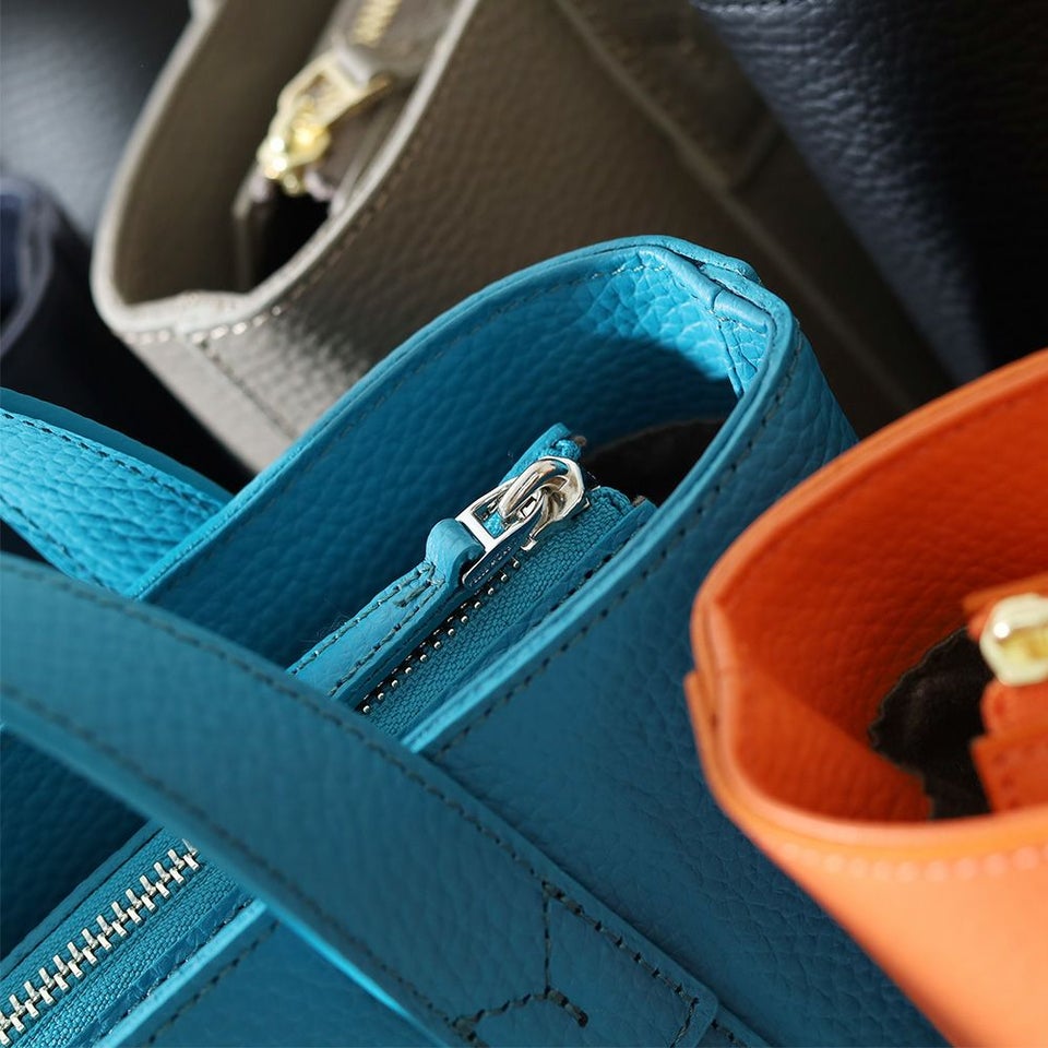 定番のミニトートにファスナーを追加することで、カジュアルさを抑えた上品な印象に。開閉部をしっかり閉じられるので、人混みの中でも安心して持ち運べます。