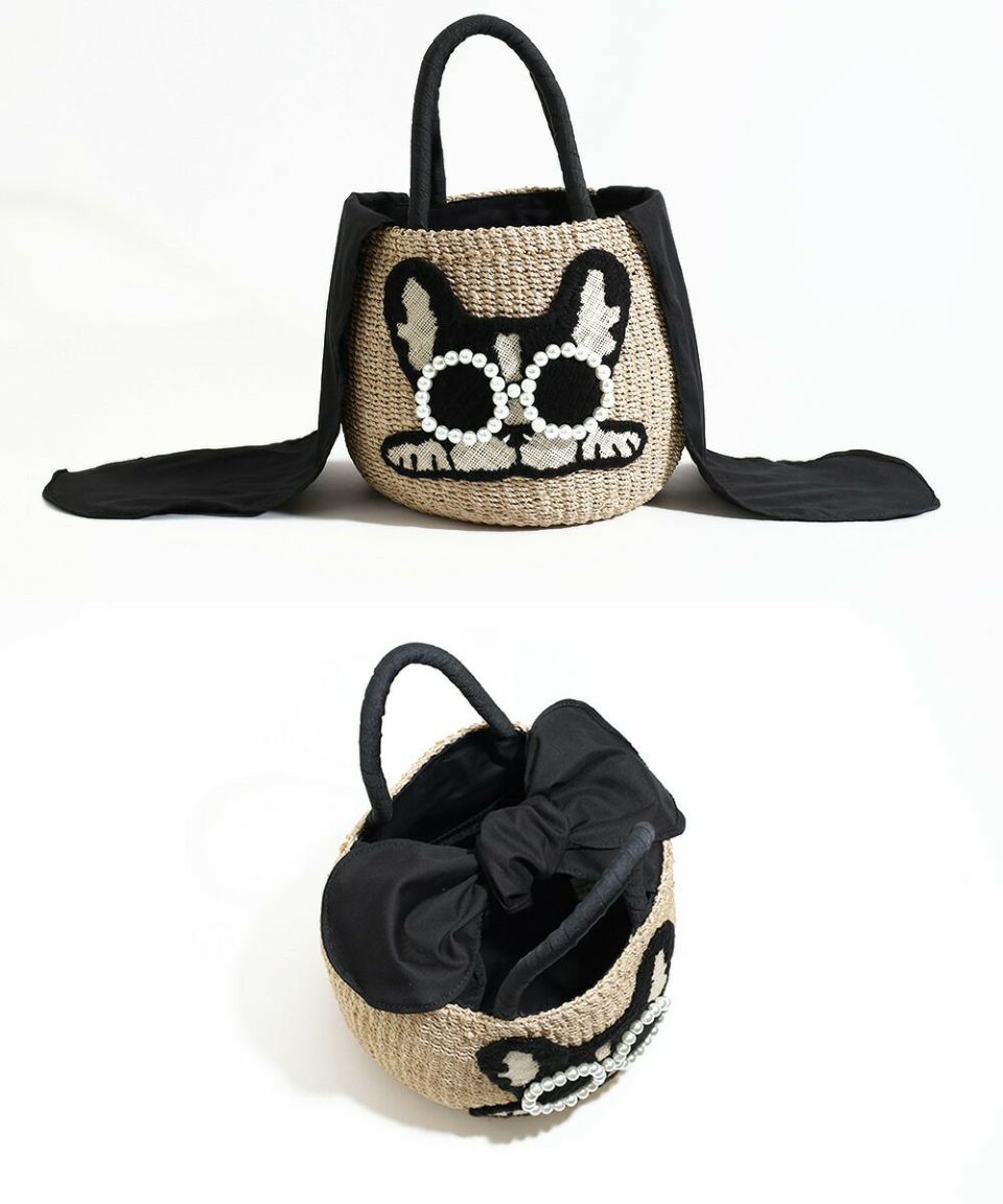 パールサングラスをかけた可愛い動物たち。コロンとしたラウンド型のかごバッグです。