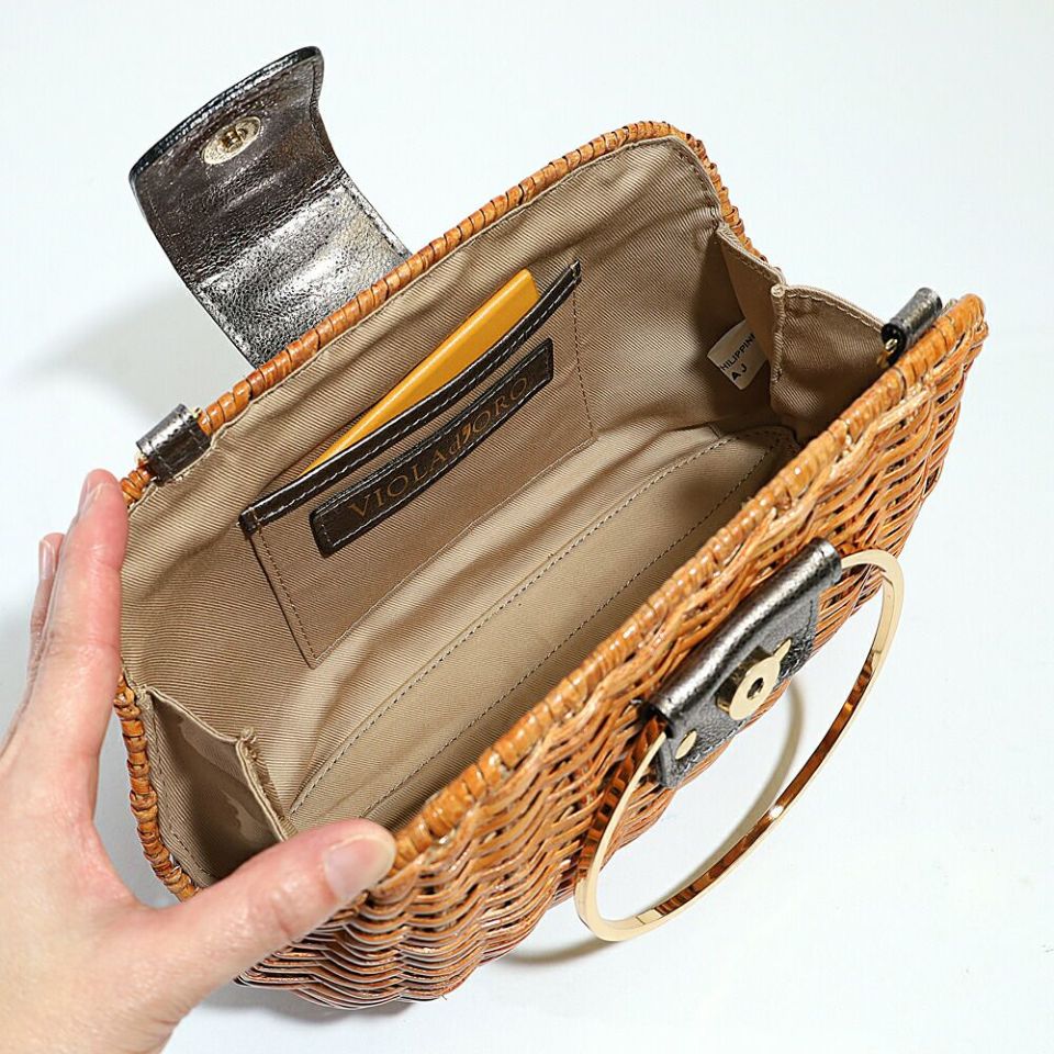 VIOLA d'ORO ヴィオラドーロ ゴールドリングのハンドルがアクセサリーライクなラタンのバッグ