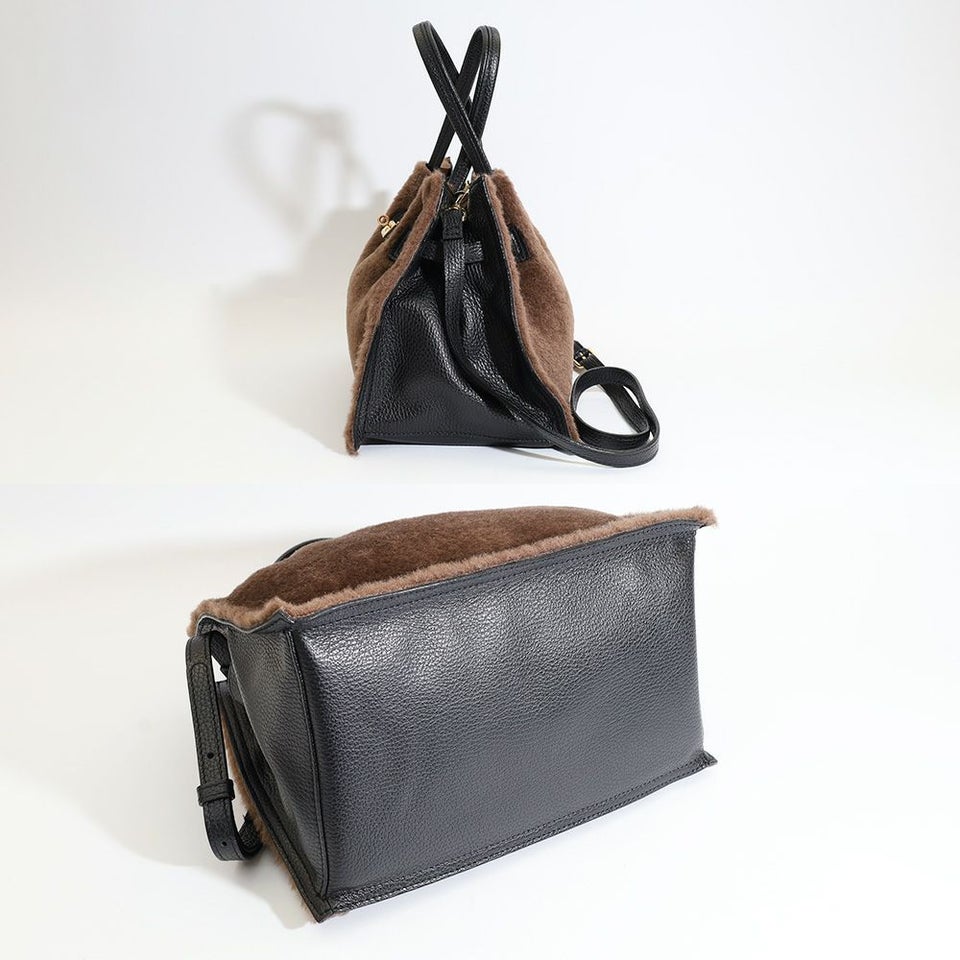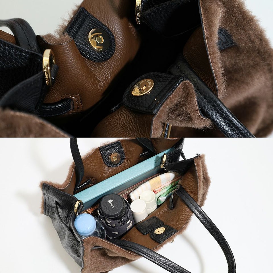 ボアとスムースレザー調を組み合わせたWフェイス仕様。季節感を演出しながらも、異なる素材感のコントラストが大人の洗練された雰囲気を引き立てます。