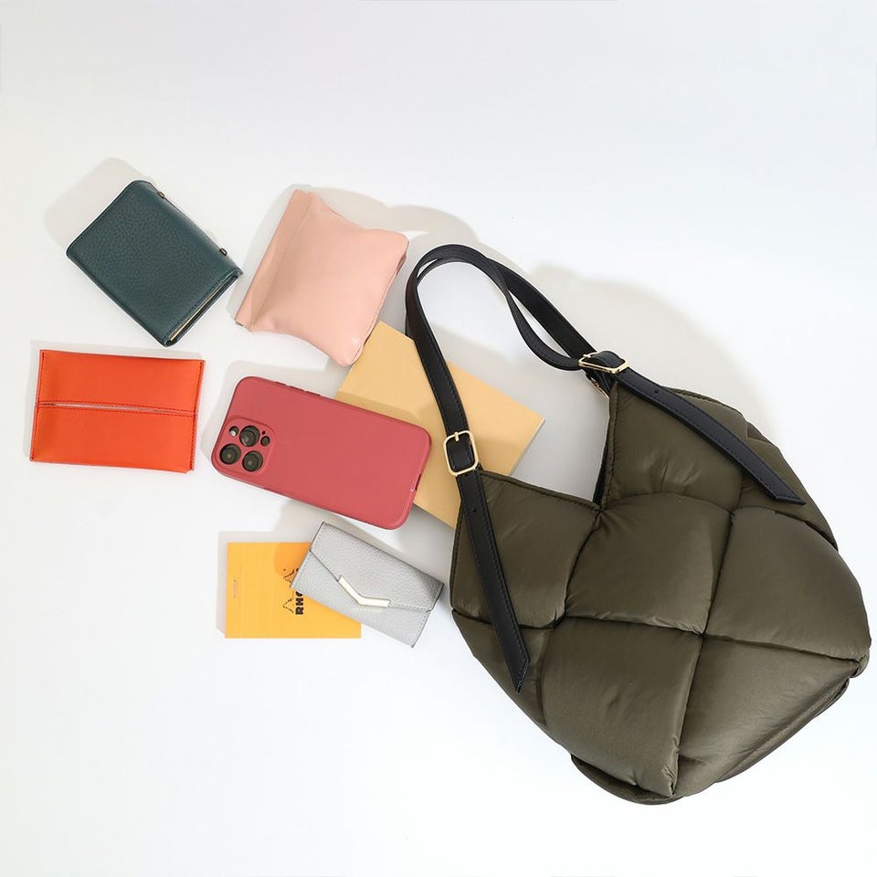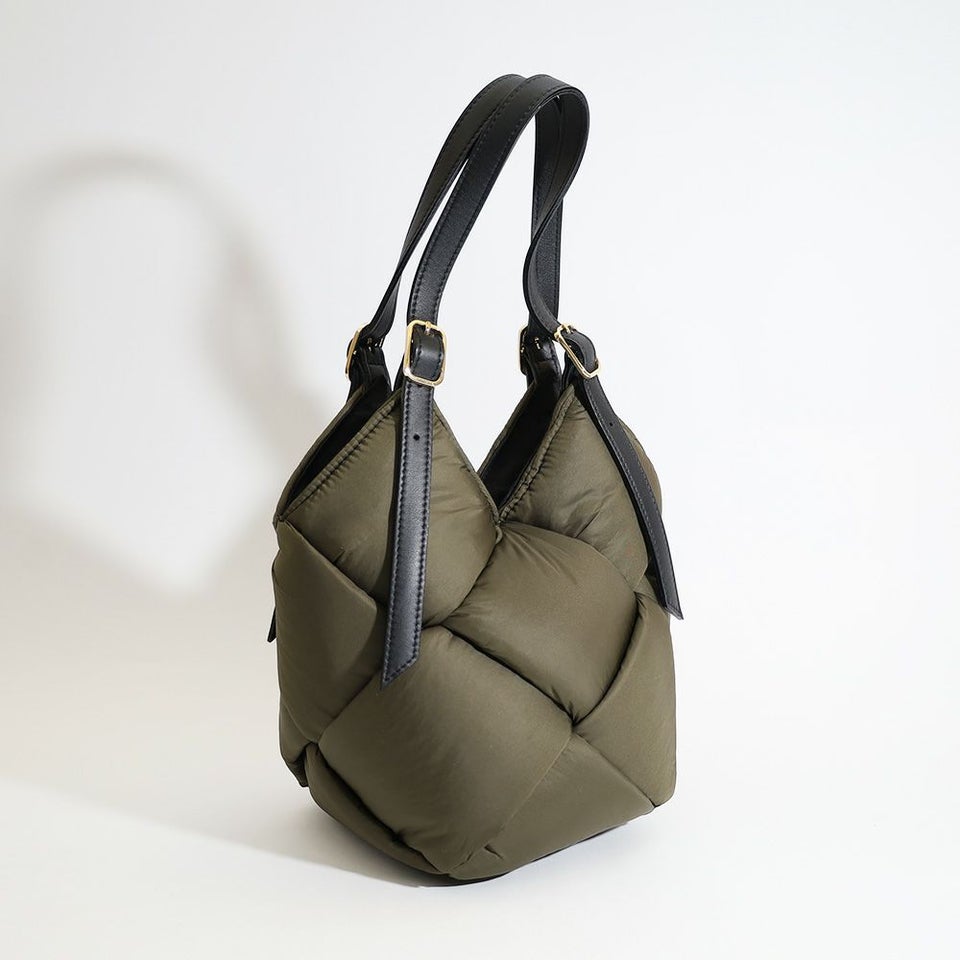 幅太のナイロンキルティングをメッシュに仕立てたユニークな表情。上質さと遊び心を兼ね備え、いつものコーデに洗練されたアクセントを加えます。