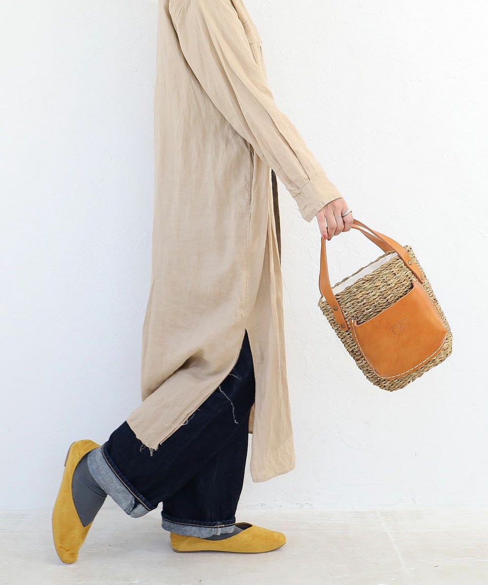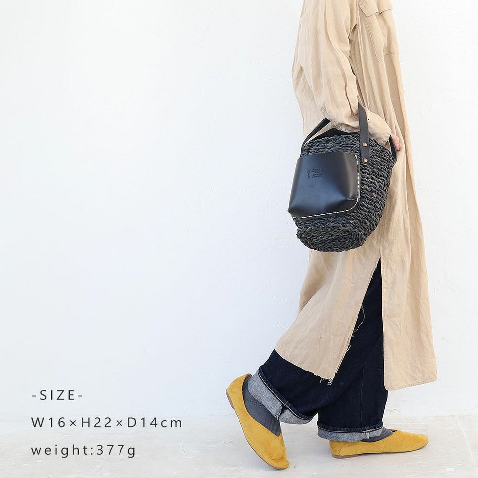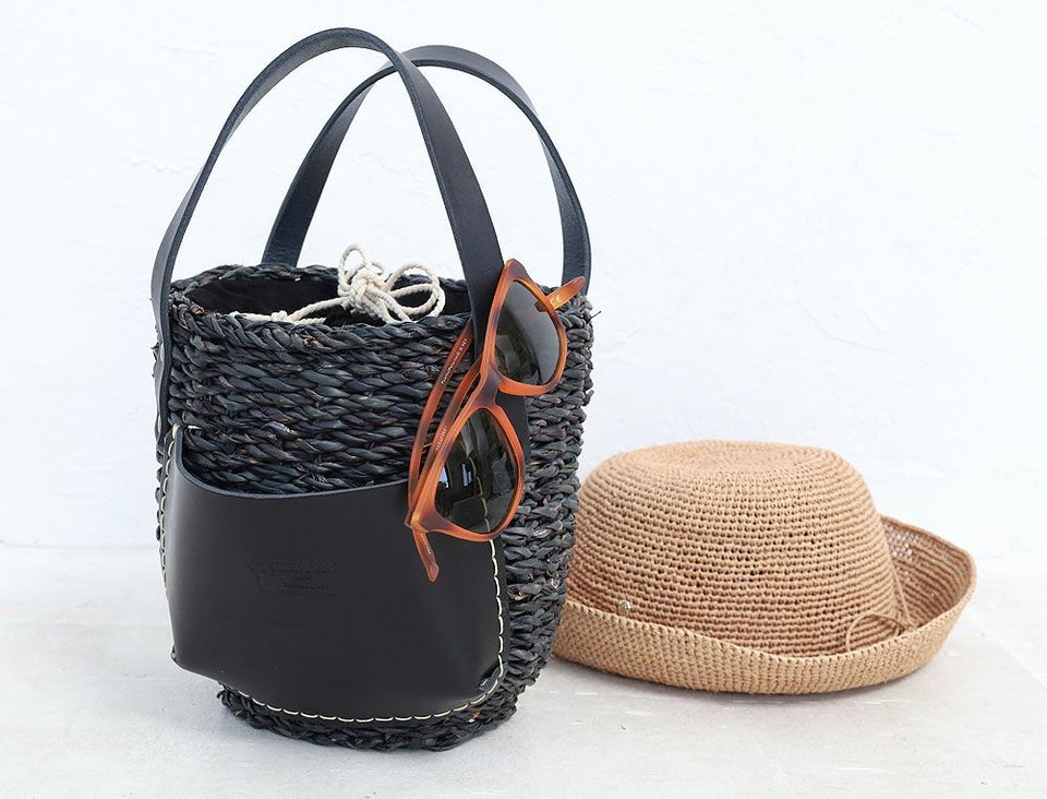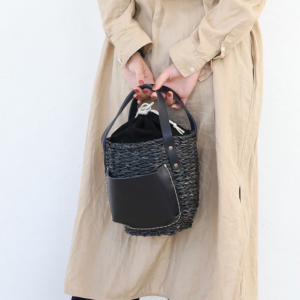 ナチュラルなカゴにレザーを合わせることで上品さをプラス。