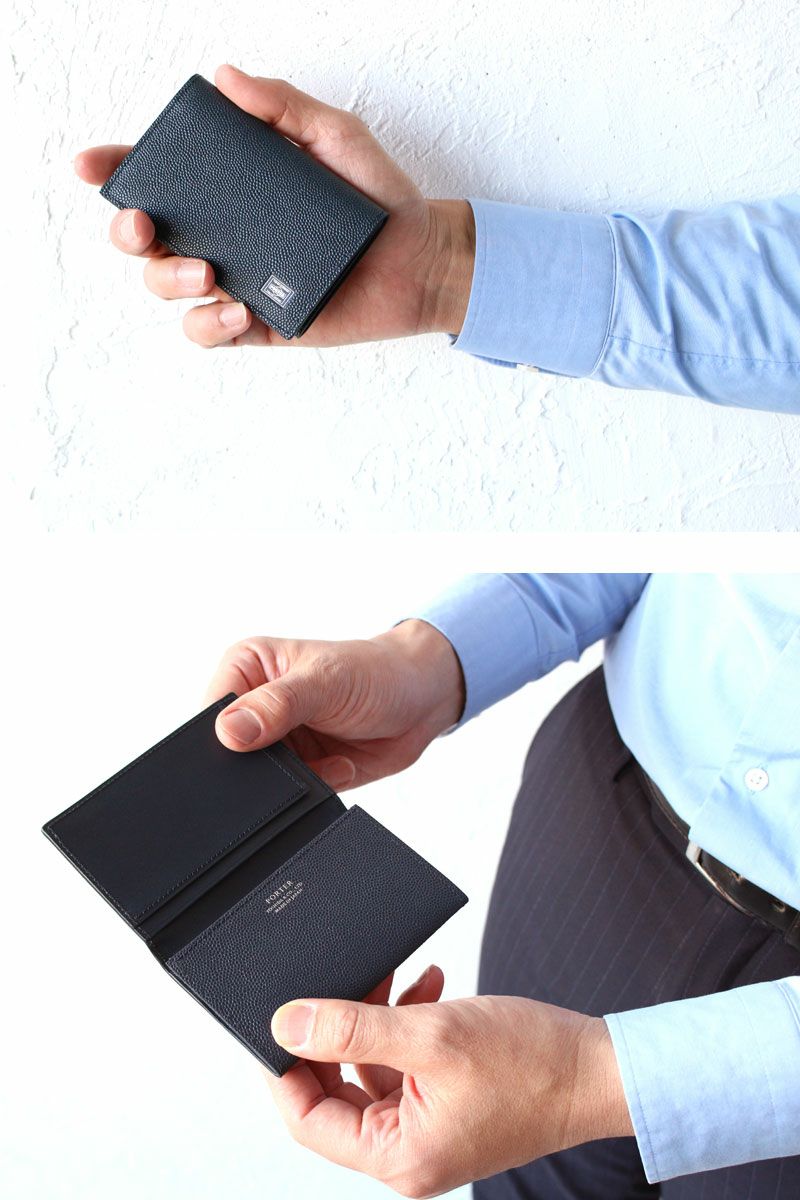 しなやかな風合いのエンボス加工を施した輸入革を用いた小物のシリーズです。ベーシックな型に加えて、近年のキャッシュレス化により、コンパクトなサイズの財布の需要が増え、カードや最低限必要な紙幣・小銭などを機能的かつ実用的に収納し携帯することができる型を多く構成に取り入れています。