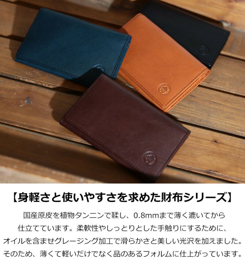 国産原皮による植物タンニン鞣しの革を0.8mmまで漉いた薄くて軽いお財布シリーズ『フリムジー』