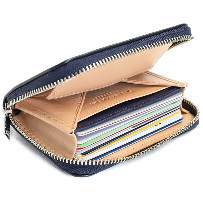 カードをまとめて収納できるので、カードが多い方にも安心。小銭入れ部分が大きく開き、小銭の出し入れがしやすい仕様になっています。