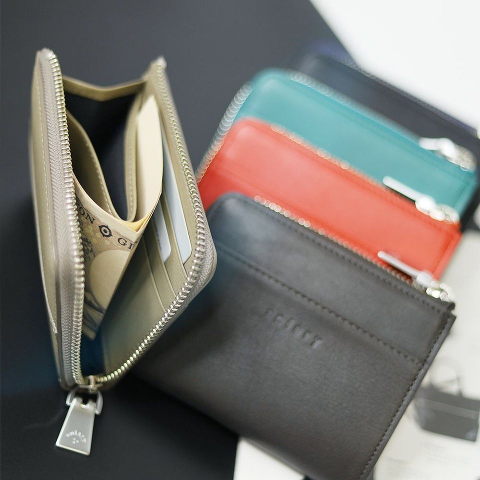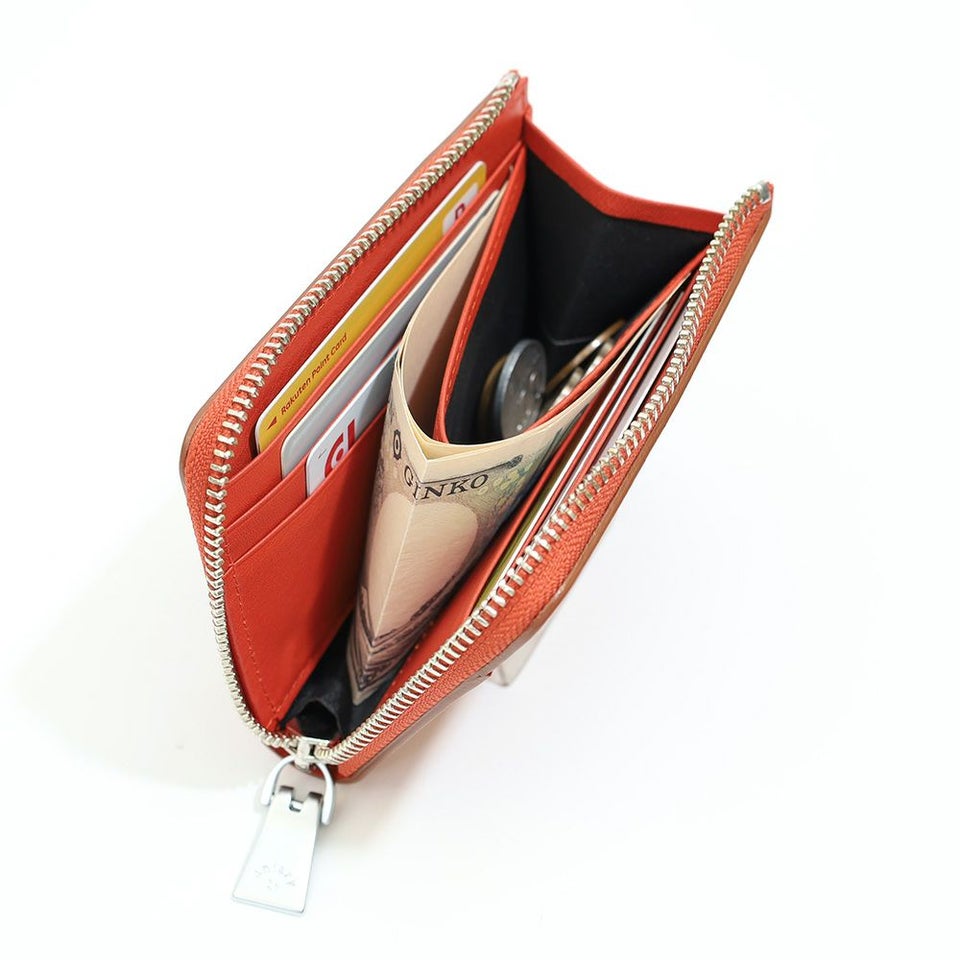 コの字型に比べて開閉がスムーズなL字ファスナー仕様。中身が見やすく、取り出しやすい快適な使用感が魅力です。