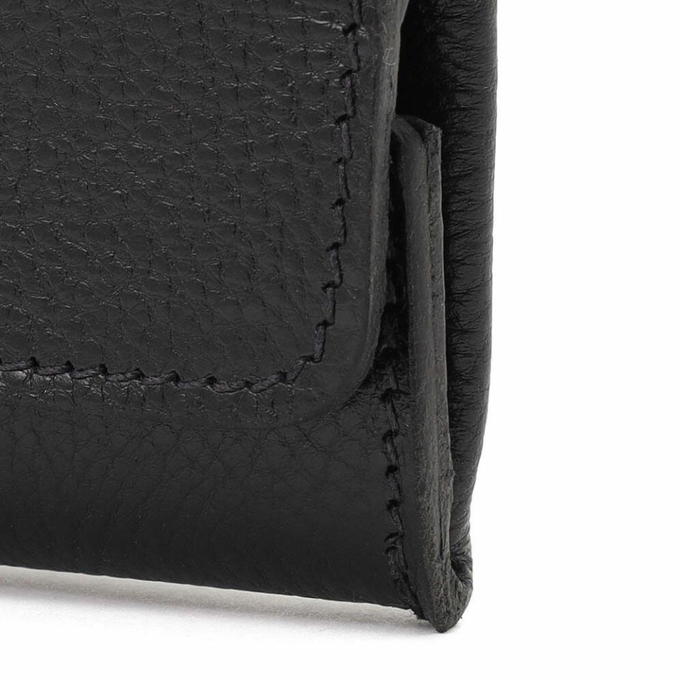 シボのある上質な牛革を使用したコインパース。フラップ部分にロゴを型押ししており格調高く仕上げています