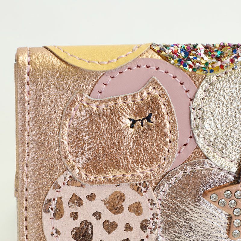 パッチワークの中にはキラキラのスターと目を瞑った猫ちゃんが施されています♪