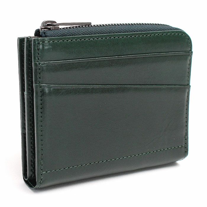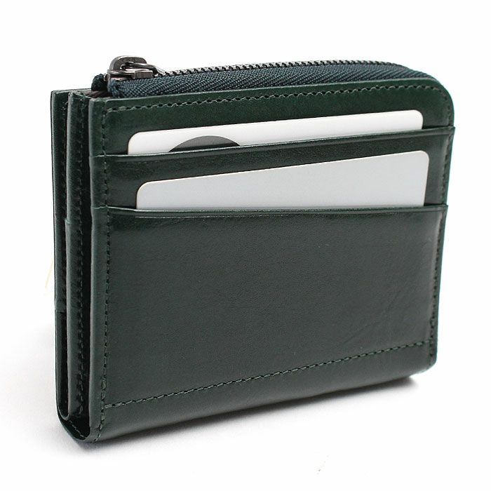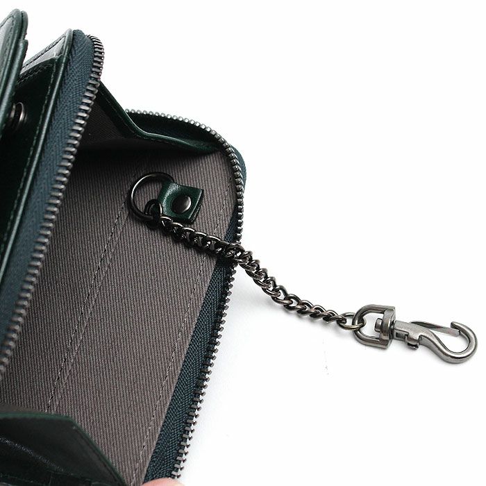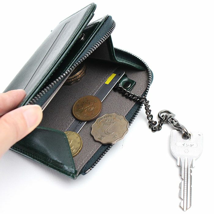極力顔料を使わず素上げにて仕上げておりますので、革本体の味と経年変化を楽しんで頂けます。L字のファスナーポケット内装にはキーチェンと収納ポケットを2つ付けており、背面にカードポケット2段付けております。