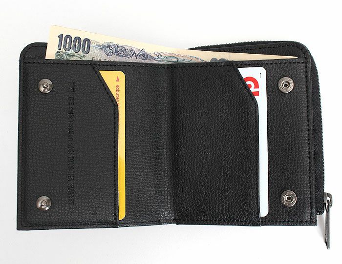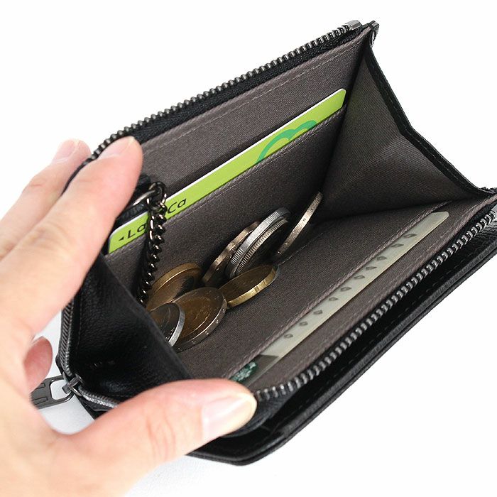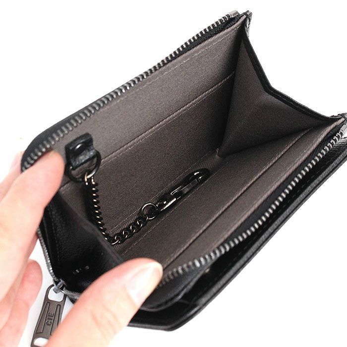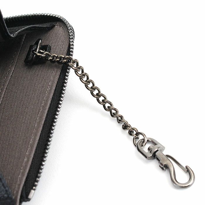 エンボス型に於いてはより立体的に見えるようツートンで色の表現をしており、仕上げには水溶性の溶剤を使っている為、若干の撥水効果と染料では表現しにくい発色性が特徴になります。L字のファスナーポケット内装にはキーチェンと収納ポケットを2つ付けており、背面にカードポケット2段付けております。