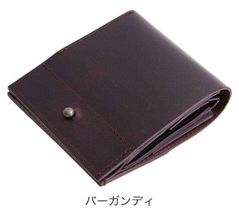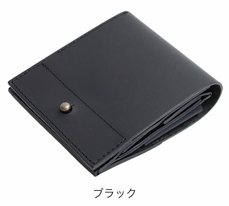 今回は少し厚みが増したことで二つ折りが開きやすくなってしまったため、ギボシの留めをつけました。ぴったりとしたポケットに収納する際には、このギボシにより生地が擦れて穴が空く恐れもございますのでご注意ください。