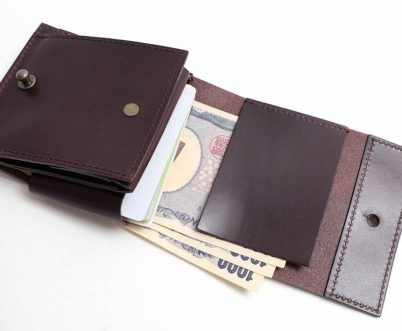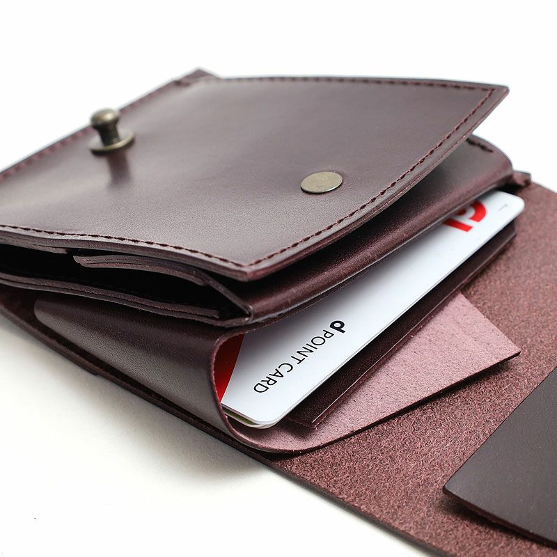 試行錯誤を重ねた結果[millefoglie]と同じボックスの小銭入れを採用した【Piastra 2】が完成しました。カード入れは枚数に合わせてぴったり収めるため[cento]のような差し込み型になっています。抑えの革を抜けば大きく拡がって出し入れが楽になる仕様です。(こちらの記事にてカード部分の詳細写真を掲載しております)