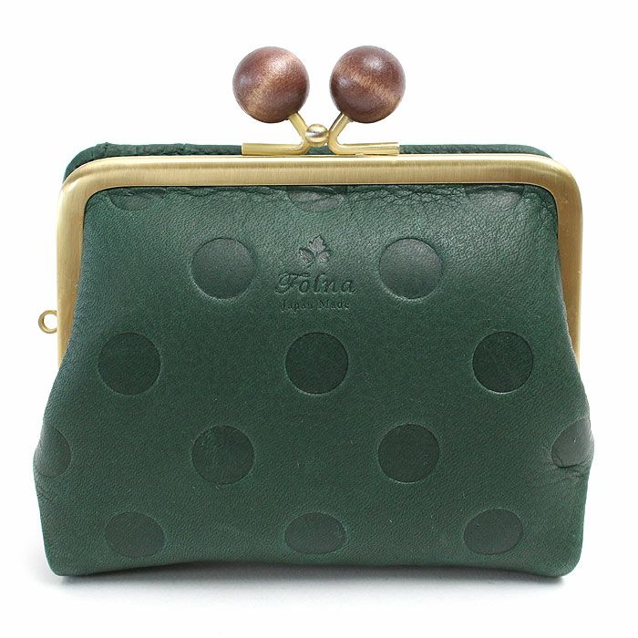 本体はドットの型押しを施した上質な牛革を使用、木玉のがま口とのコンビネーションで柔らかな印象に仕上がりました。