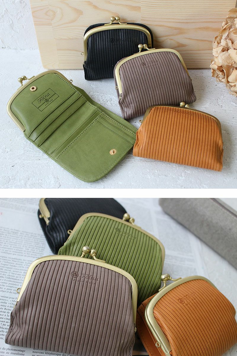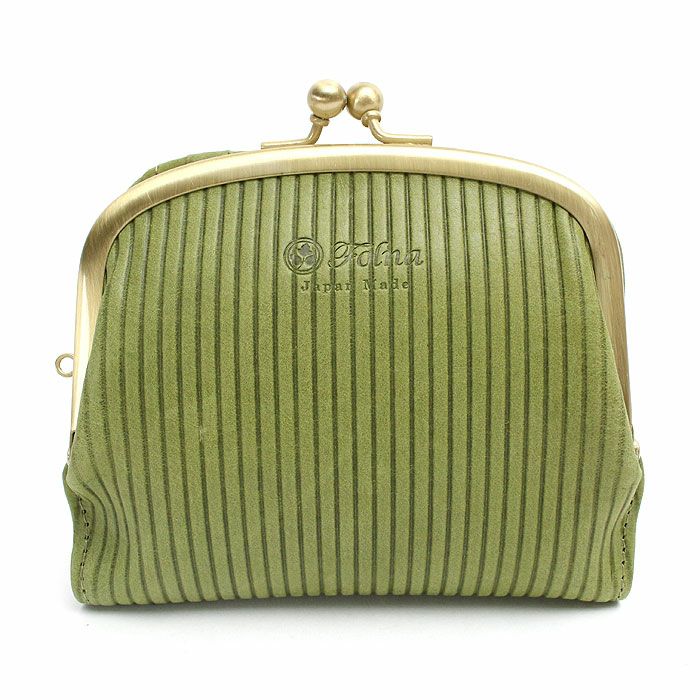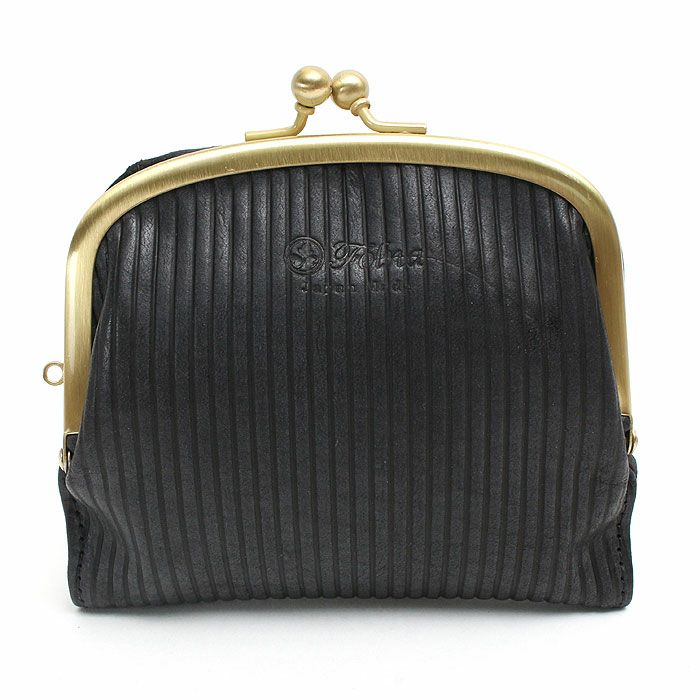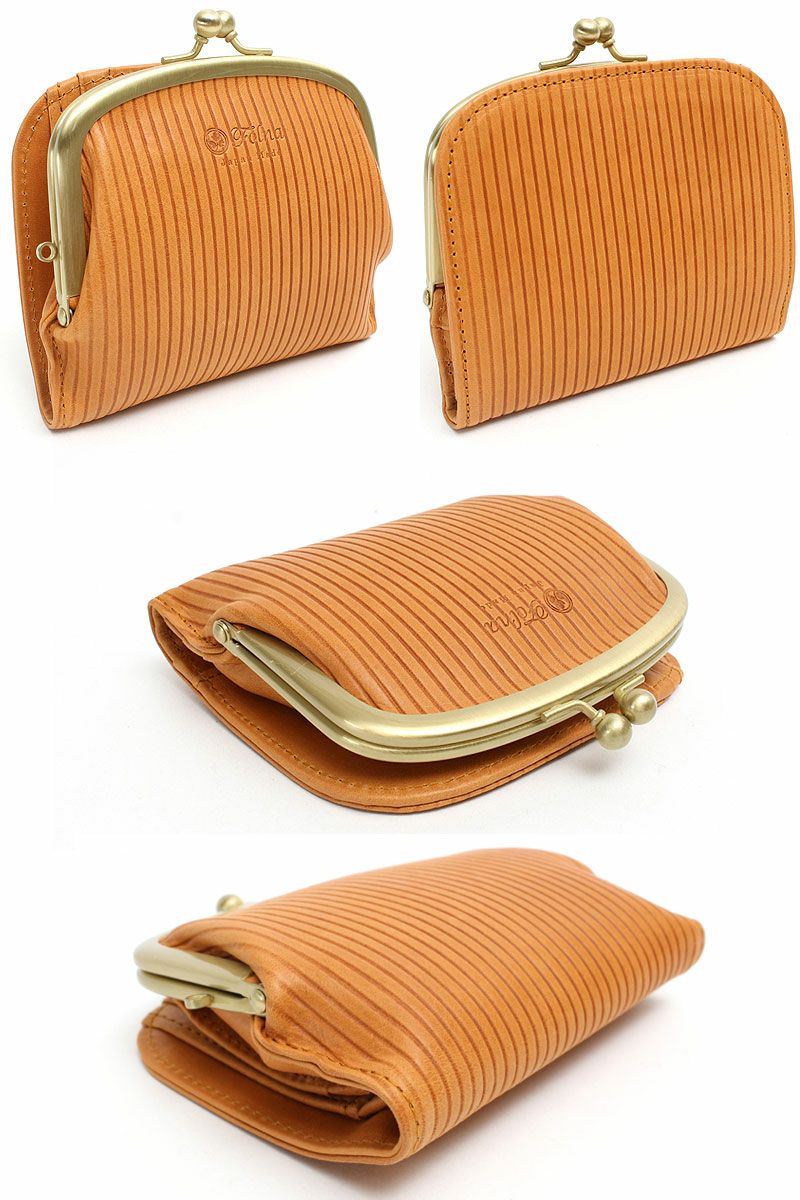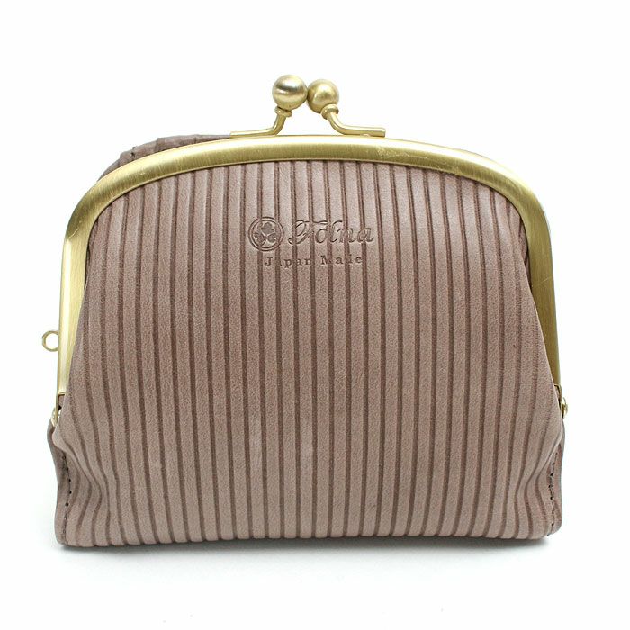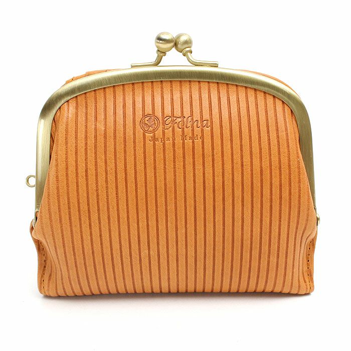 美しい経年変化を楽しめるヌメ革に、ストライプ模様の型押しを施した、 オリジナルレザーを使用したがま口財布。