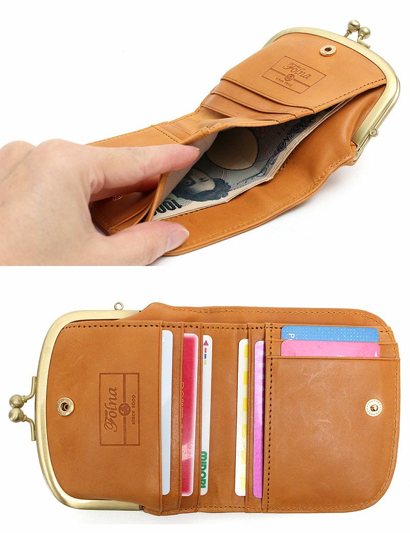 小銭入れ部分はがま口タイプで、中に小さなポケットが付いています。