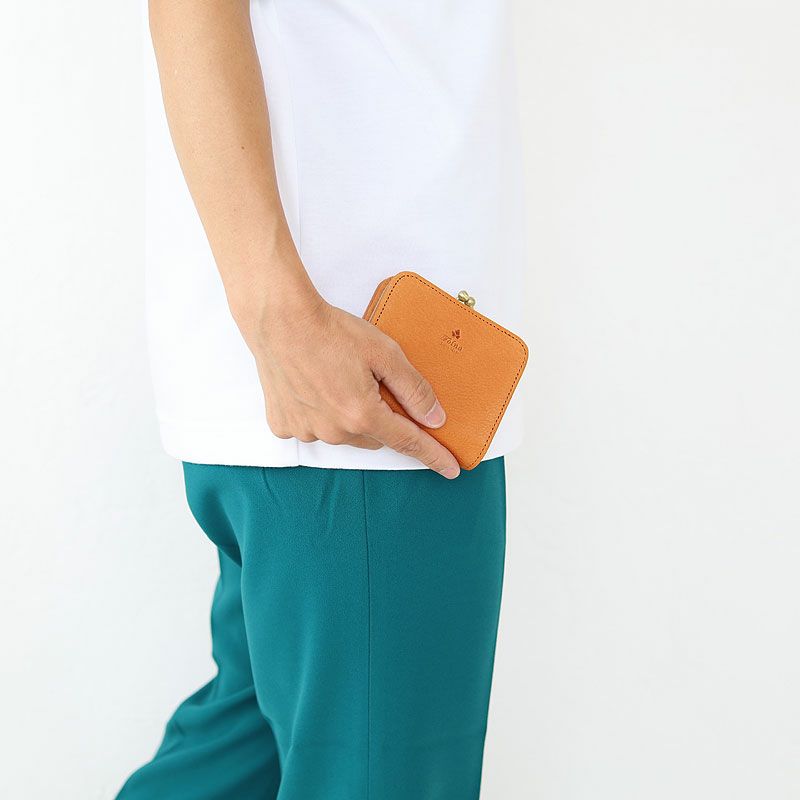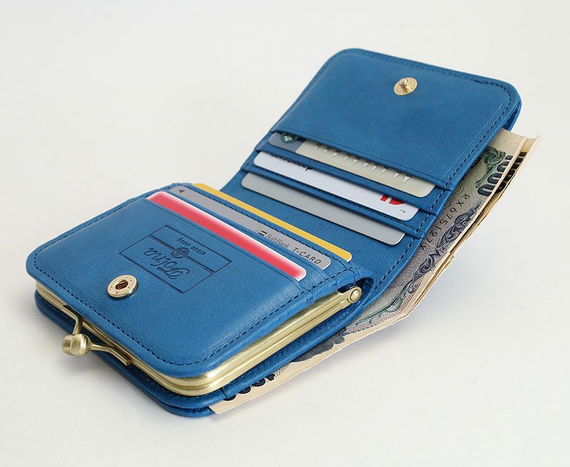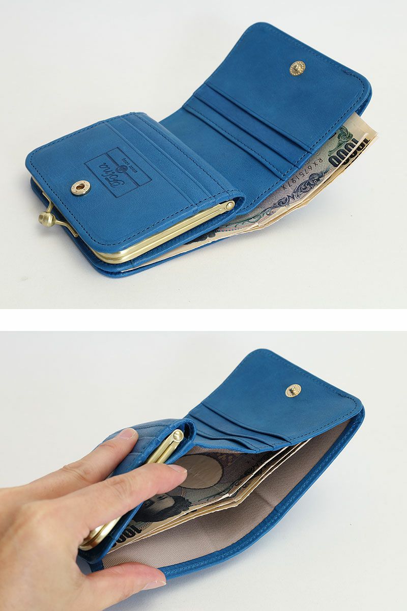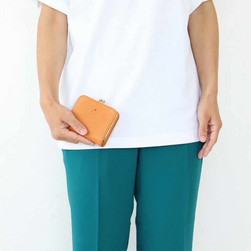 この「がま口二つ折り財布」は、小振りでスマートなルックスながらも、機能的な財布です。
