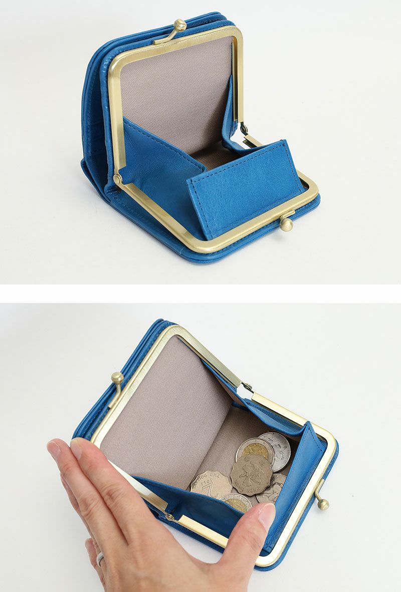 がま口部分は大きく開くボックス型の小銭入れで、中身が一目瞭然。