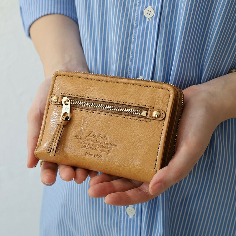 ツヤ感のあるゴート革を用いた、上品な仕上がりの二つ折り財布です。