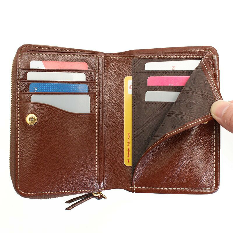 ラウンドファスナータイプの小銭入れは中に仕切りとポケットを備えています。