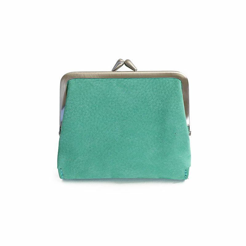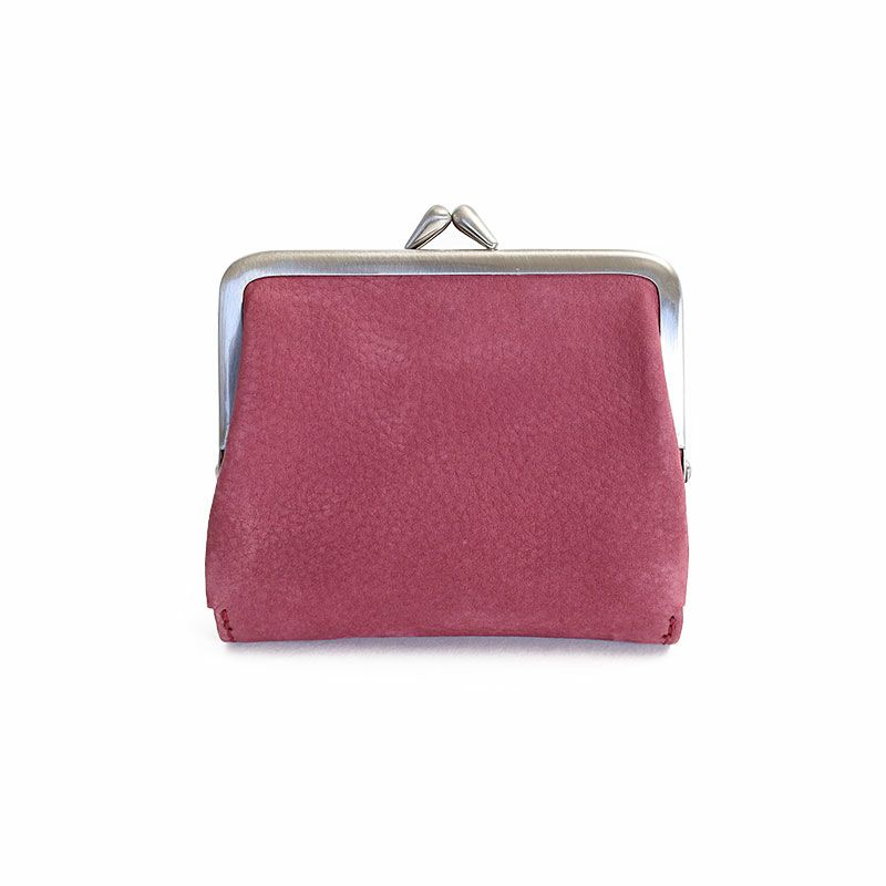 厚みを残したヨーロッパ原皮をクロムで鞣し、 柔らかさをだし、タンニンを加え、アニリン染料で仕上げたヌバックレザーを使用したがま口タイプの二つ折り財布です。