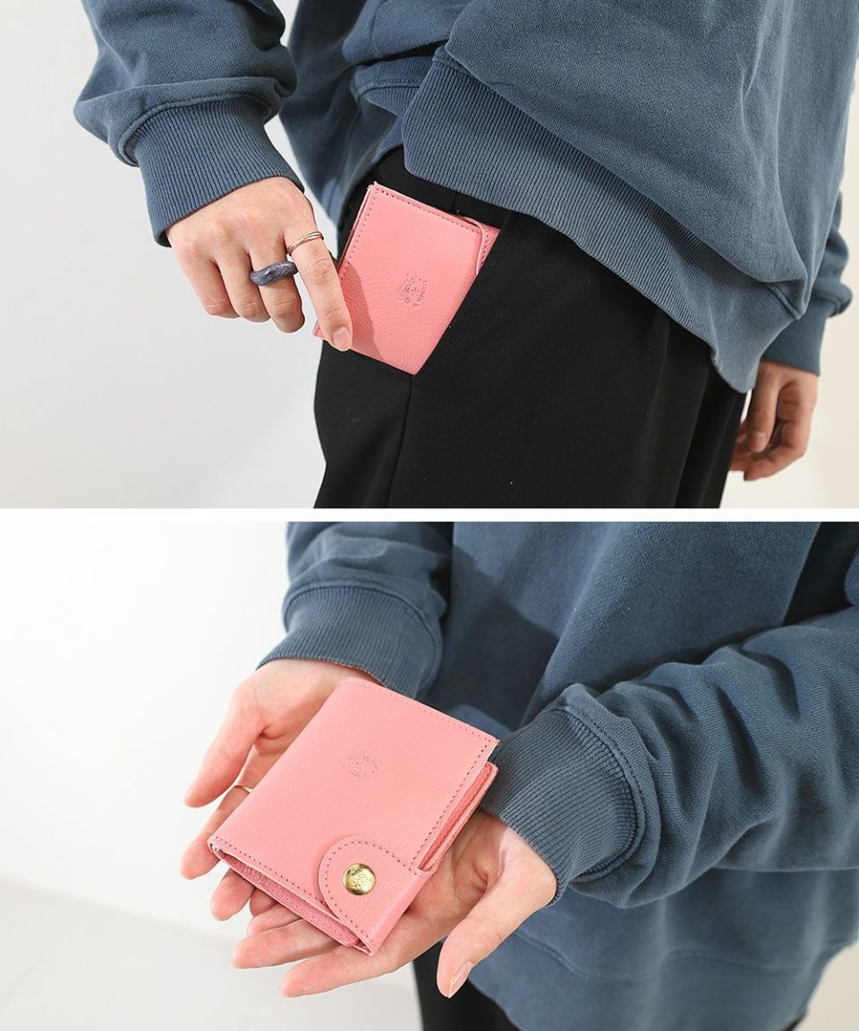 IL BISONTE イルビゾンテ 財布 二つ折り財布 ゴールドカラーのスナップボタン付きのタブがアクセントになったウォレット。54252306141