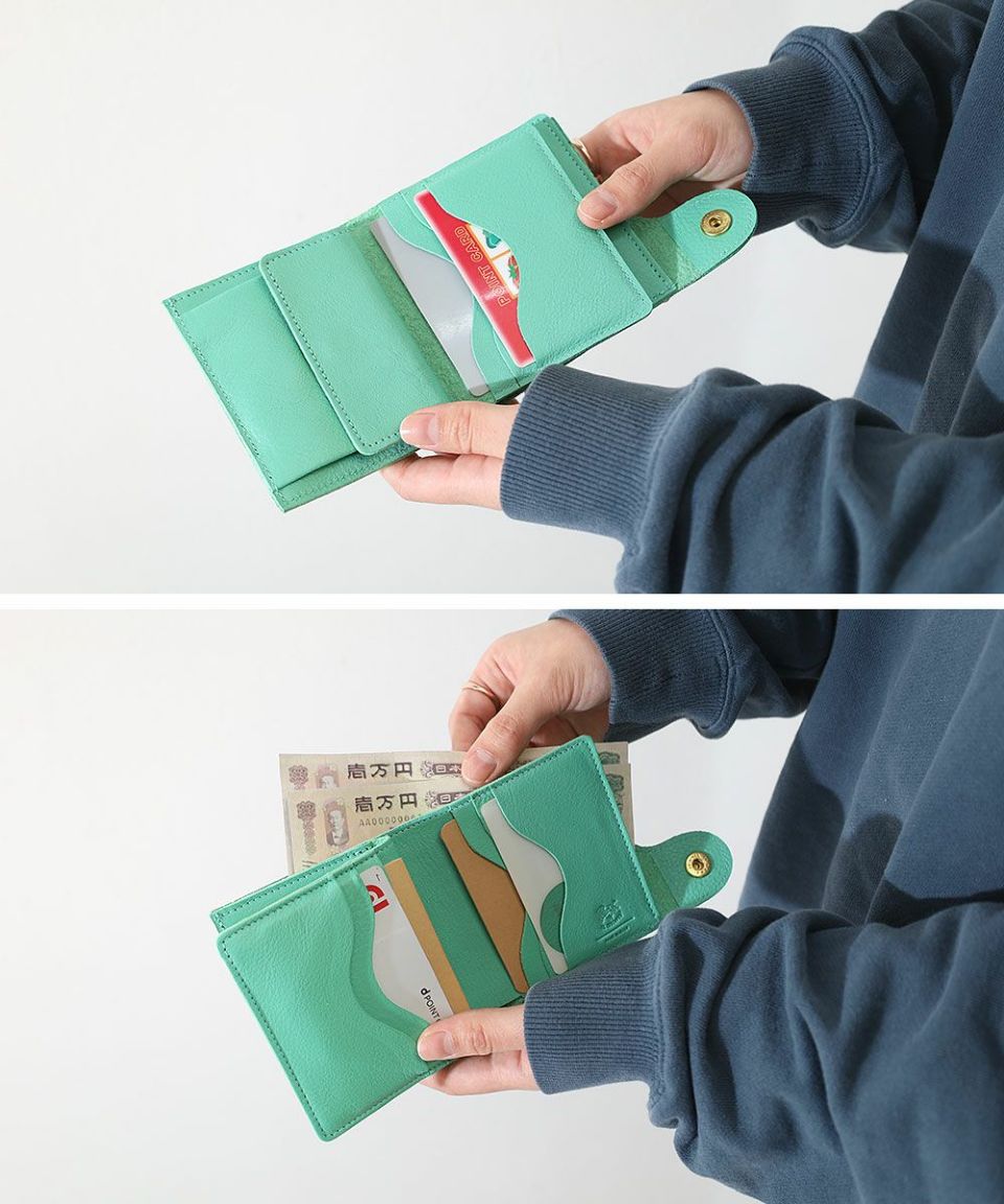 左にコインケース、右にカードケースを配した2つ折りタイプのデザインです。