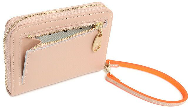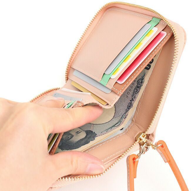 こちらはポップなハンドル付きのコンパクトな二つ折り財布です。