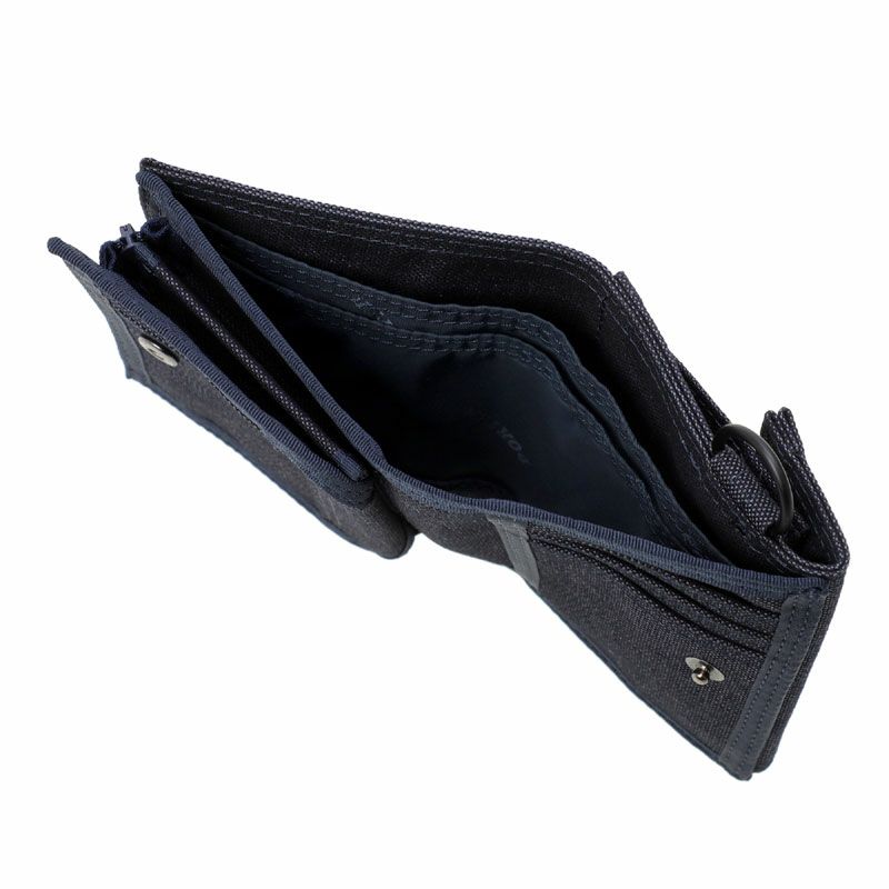 二つ折りウォレットはコンパクトなサイズながらも収納力に優れています。ファスナーポケットはマチ付きで大きく開き、仕切りを設けているため整理がしやすく小銭の出し入れをスムーズにできます。紙幣やカードも見やすく、整理・収納がしやすい仕様です。