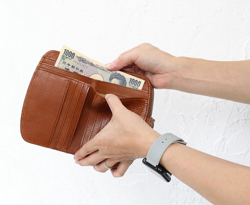手に持ちやすいサイズの二つ折り財布。