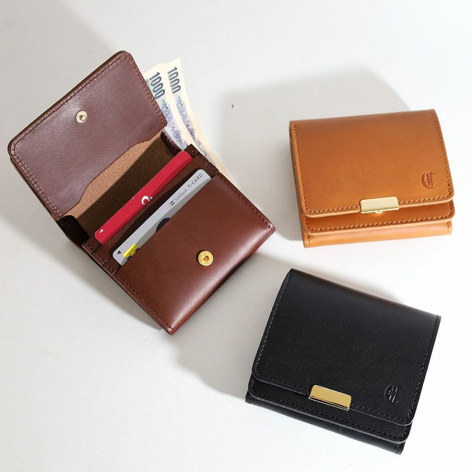気兼ねなく持てるシンプルなルックスの中に、どこか懐かしいクラシカルな雰囲気も感じる二つ折り財布。