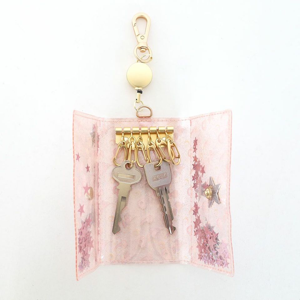 クリアPVCとスパンコール入りのユニコーン柄のキーケース。