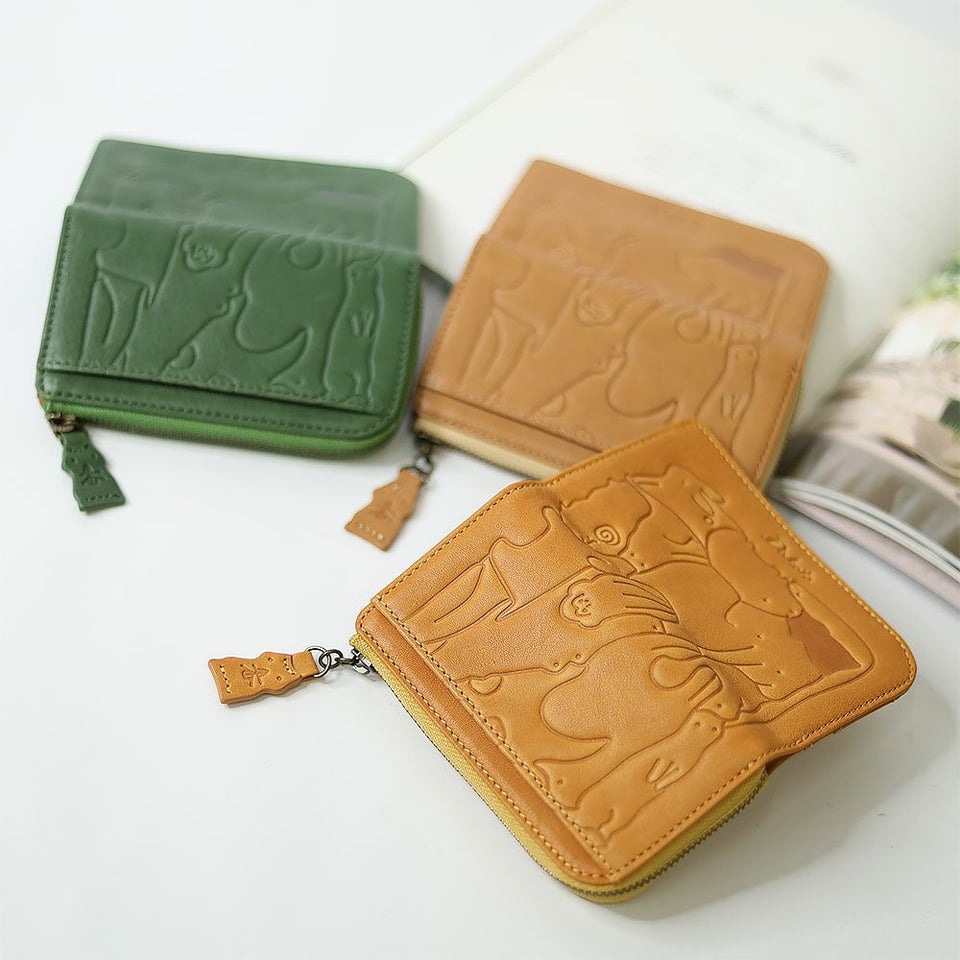 さまざまな動物をパズル柄にして型押しした、遊び心あふれるデザインです。動物たちがぎゅっと詰まった表情は、見るたびに楽しい気分にさせてくれ、日常使いの小物にさりげない個性を添えます。
