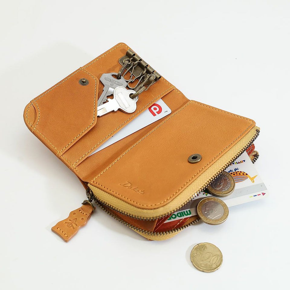キー収納に加えてポケットと小銭入れを備えているため、ちょっとした外出にも便利です。必要最低限の現金やカードを一緒に持ち歩ける、実用性の高い仕様となっています。