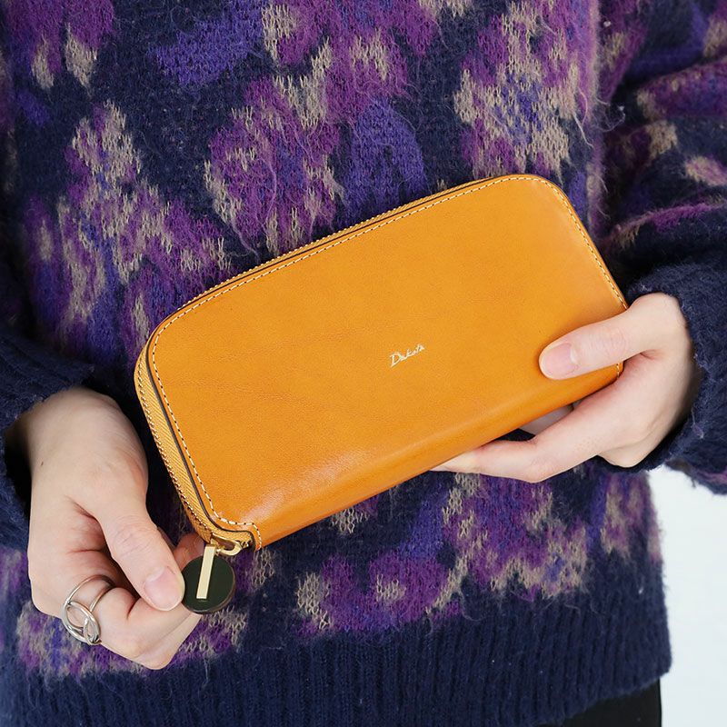 緩やかな曲線が優しい印象を与えてくれるラウンドファスナー長財布。