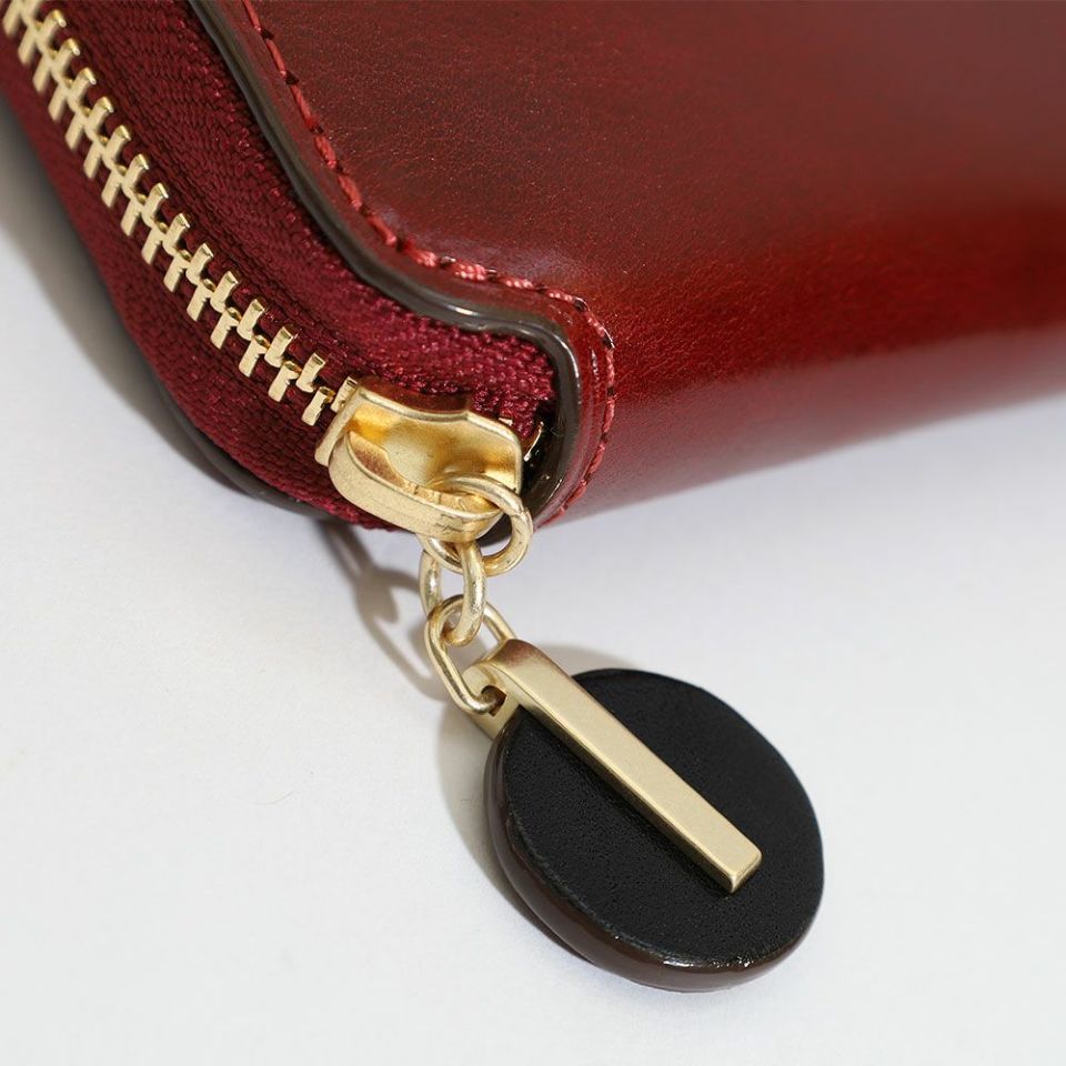 丸みを持たせたフォルムと、丸い引手が魅力のラウンドファスナー長財布です。