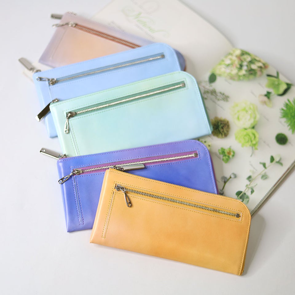 手描きグラデーションが美しい日本製レザー長財布