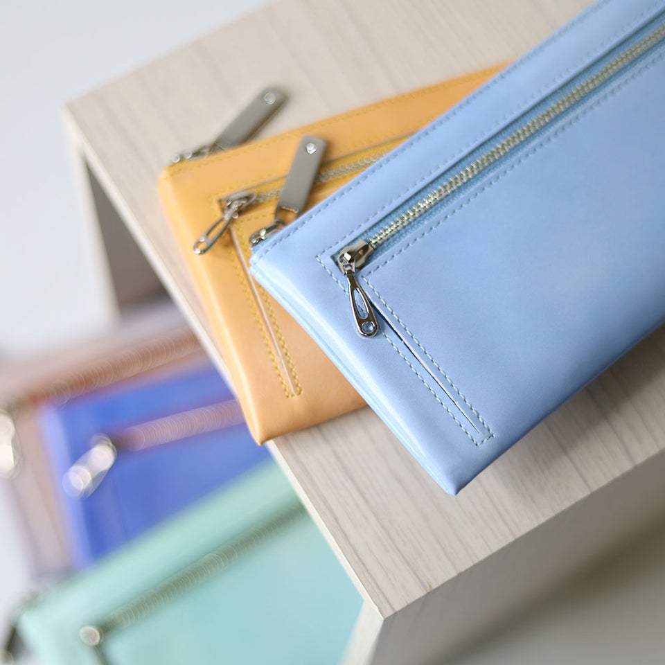 オレンジやイエロー、ライトグリーン、スカイブルー、パープルと、空の情景を思わせるカラーをラインナップ。装いの差し色としても楽しめ、持つだけで気分が明るくなる色合いです。