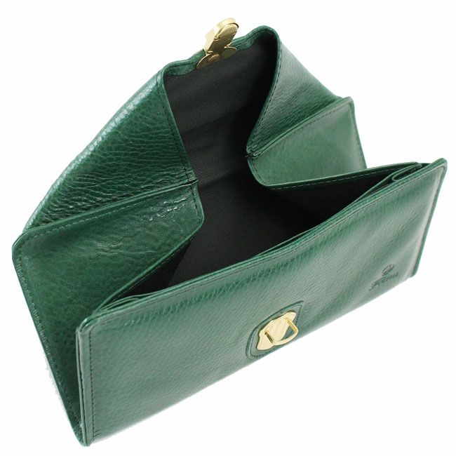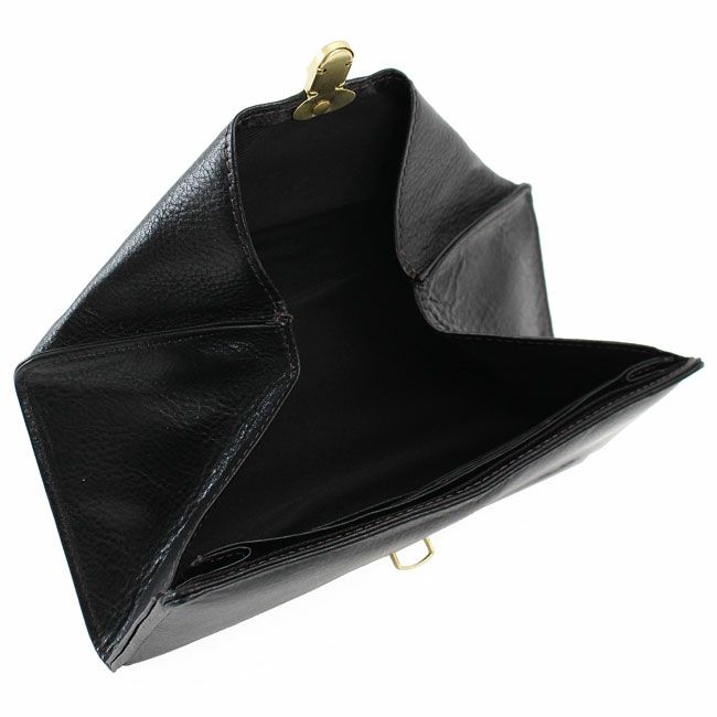 三角形に折り畳まれたフラップを開くと大きなスペースが現れ、ひと目でお財布の中身が分かります。