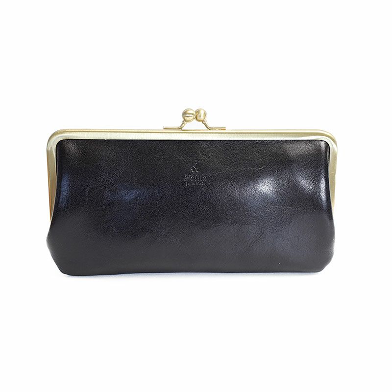 艶やかなイタリア製牛革を使用したがま口タイプの長財布 送料無料