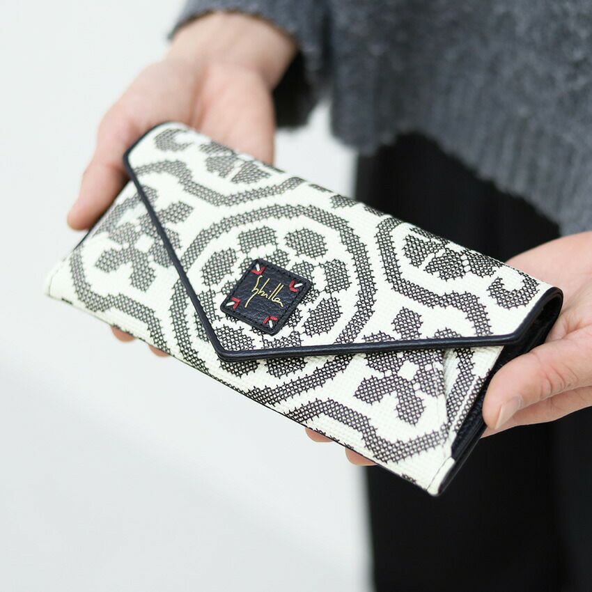 封筒型のデザインが愛らしい長財布です。