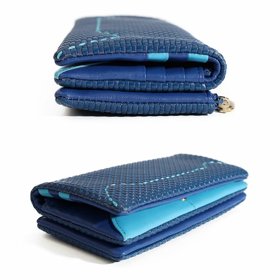 メッシュで編み込んだようなエンボス加工されたかぶせ長財布。