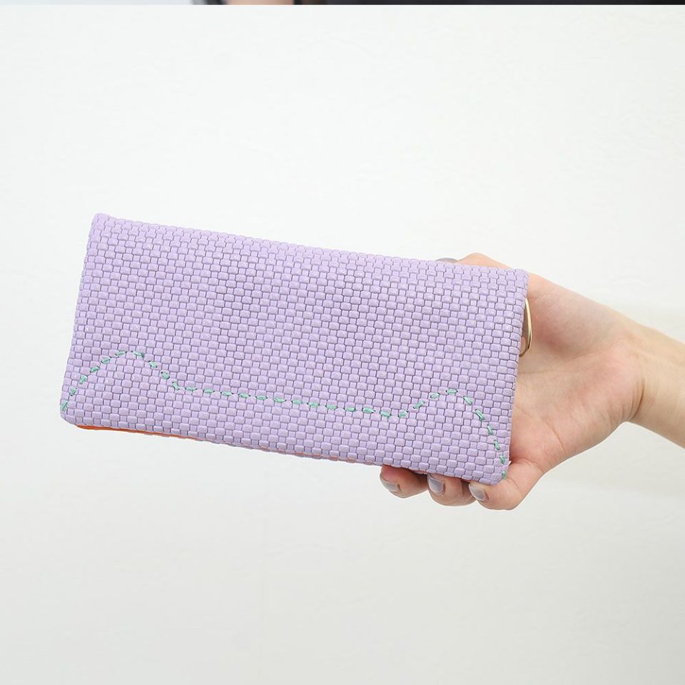 ■シリーズ案内:メッシュで編み込んだようなエンボス加工されたかぶせ長財布。