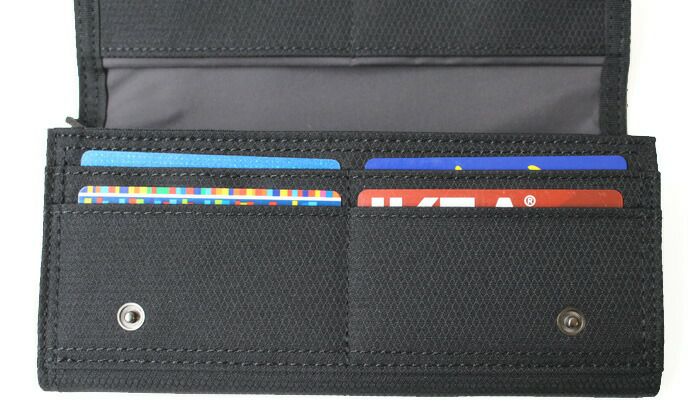 見た目はシンプルですが、収納を多数設けることによって中身の整理がしやすくなっています。メイン開閉にはスナップ留めを採用し、内部に複数のカードポケットやオープンポケットを備えています。多くなりがちなカード類やレシート、チケットなどをすっきりと収納できる機能的な内装。札入れはジャバラマチの2ルーム仕様で、紙幣の出し入れがしやすく、仕分け管理に便利な作りになっています。シックなグレーカラーで視認性が良く、収納物が取り出しやすいのもポイント。使いやすさにこだわった作りになっています。