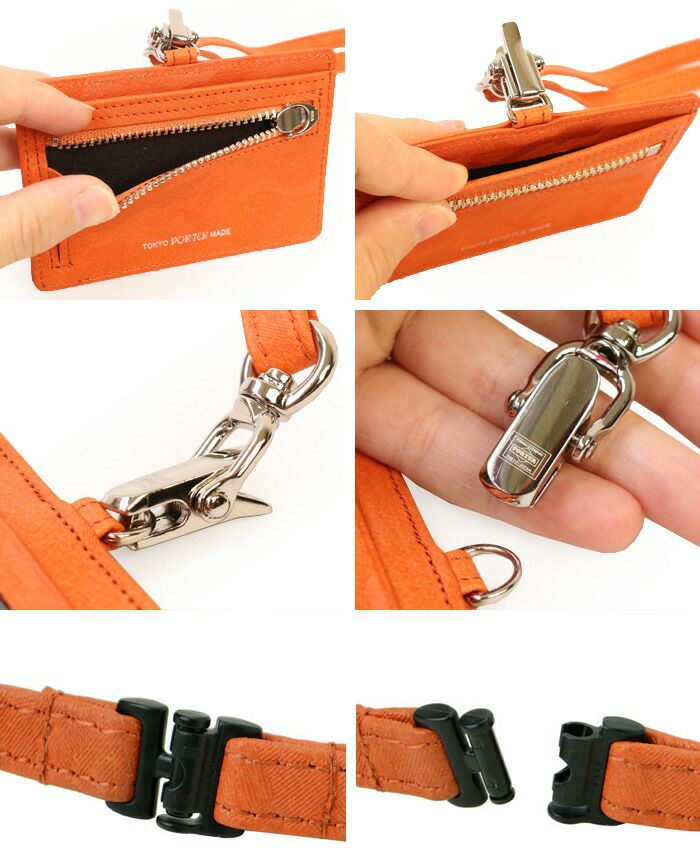 定期やIDカード、小銭をまとめて持ち運べるIDホルダーです。前面にはIDカードの収納に適したクリアポケット、背面側には片マチつきのファスナーポケットとカードポケットが備えられています。ネックストラップはピンチ状の金具で取り外しが可能ですので、ポケットに収納したいときにも対応してくれます。