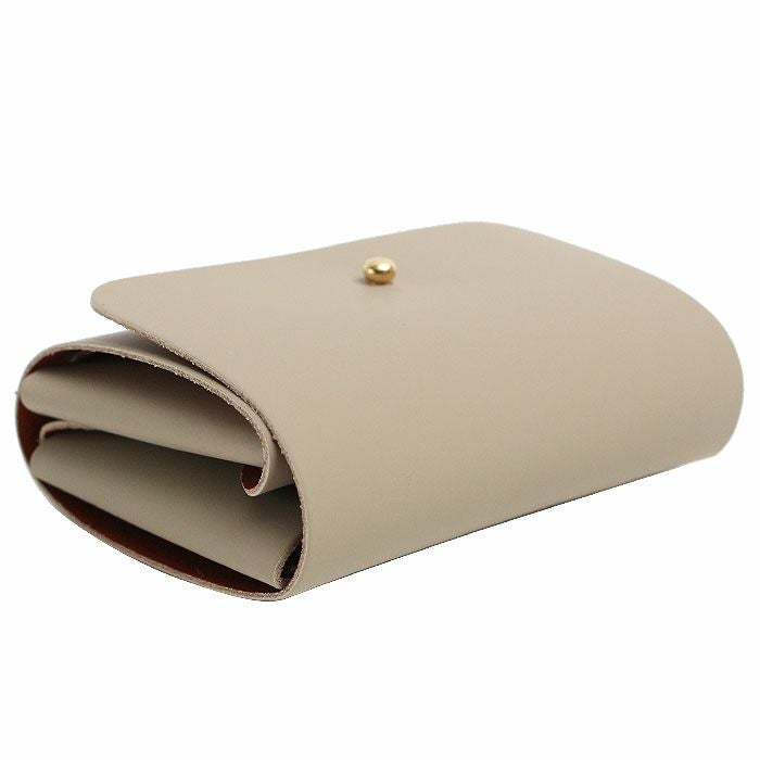 手のひらサイズの折りたたみ構造で作られたコンパクトな三つ折り財布。ポケットにすっきり収まるかさばらないサイズ感です。
