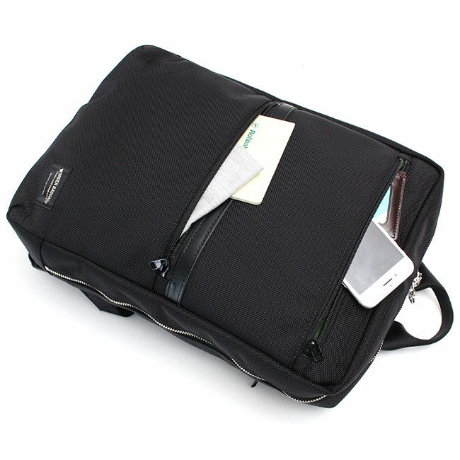 ンプルながら前面には2室のポケットを配置。上部の浅いポケットにはバッテリーや名刺入れ、その他細かなものを。下部の深いポケットにはタブレットや、ケアアイテムなども入る大きさ。さらに背面には縦型ファスナーポケットが備わっています。
